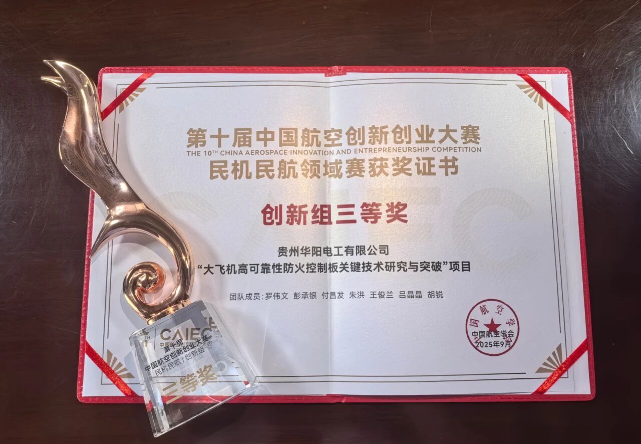 9月18日,在第十屆中國航空創(chuàng)新創(chuàng)業(yè)大賽“心在智造+民機民航”領域賽中,華陽電工憑借《大飛機高可靠性防火控制板關鍵技術研究與突破》項目榮獲創(chuàng)新組三等獎。本次大賽由中國航空學會、安順市人民政府、中國航空工業(yè)集團有限公司、中國航空發(fā)動機集團有限公司、中國商用飛機有限責任公司、中國國新控股有限責任公司、中國國際金融股份有限公司、中國航空航天工具協(xié)會聯(lián)合主辦。